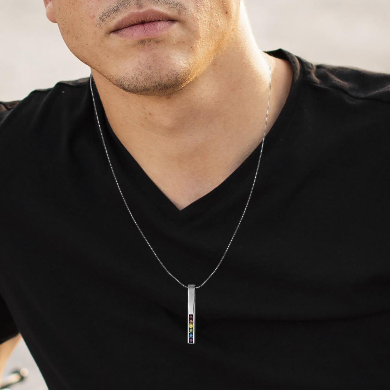 The Pride Pillar Pendant is synonymous with resilience, strength, and unwavering support within the LGBTQ+ community. This sleek and minimalistic pendant evokes a sense of quiet power, dignity, and acceptance. Like a pillar that supports significant structures, this pendant represents enduring support, solidarity, and love. It symbolizes a strong support system built on decades of courage, activism, and authenticity. Colored diamonds sit in a line of rainbow brilliance, while the setting is available in white gold, yellow gold, or rose gold. Pride is ongoing. Showcase yours with a pendant of consistent acceptance and love. Stand as tall as a pillar in your truth.